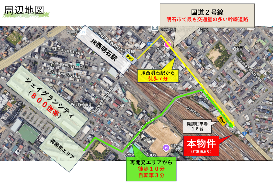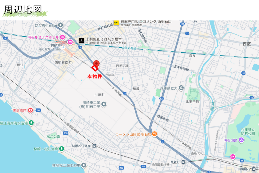 ✔ 国道2号線 明石市で最も交通量の多い幹線道路沿い